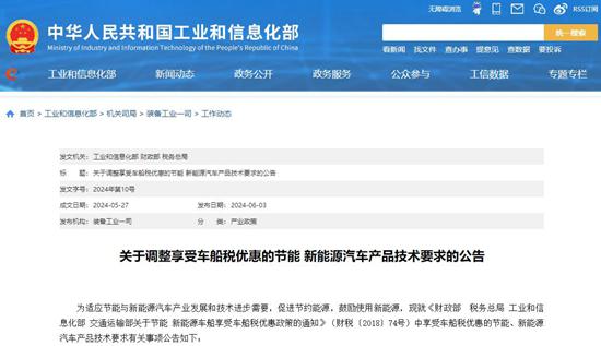 日前,工业和信息化部、财政部、税务总局联合发布关于调整享受车船税优惠的节能 新能源汽车产品技术要求的公告。