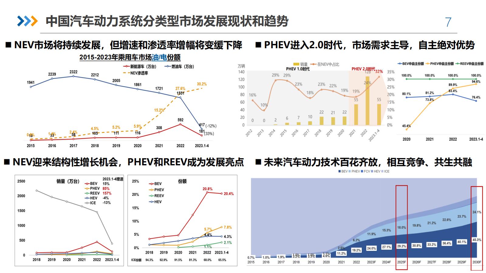 混动、插电和增程式等技术路线在不同场景下都有发展空间,并受政策和成本的影响。补贴退出和电池成本回归理性后,小电池插混可能成为更多燃油车用户升级的选择。