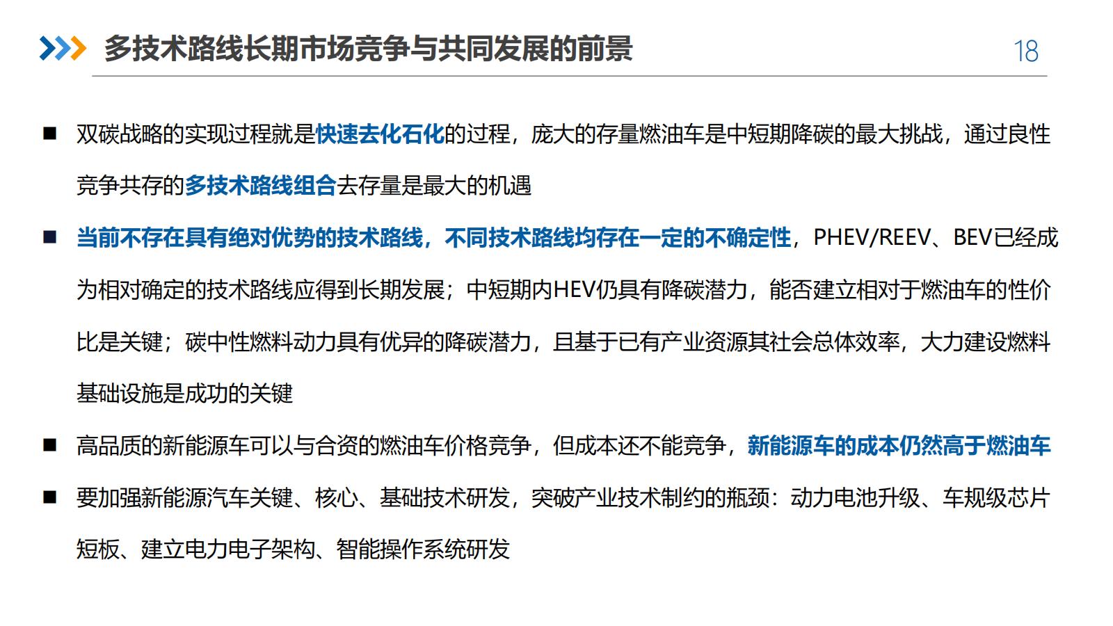 车用动力系统的技术路线必须多元化,以实现"双碳"目标。