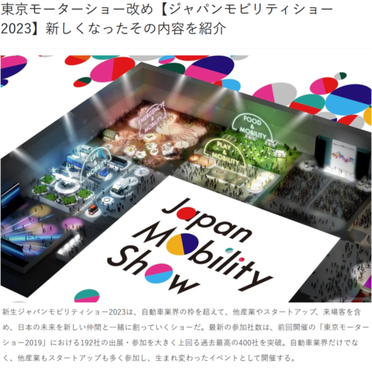 去年11月,当东京车展的主办方,日本自动车工业会在其官网上挂出新一届车展的确切预告信息时,外界惊讶地发现,这个起源自1954年,最初叫做“全日本自动车ショウ”(全日本汽车展览),迄今已举办46届的国际A级综合性汽车展览活动,居然把名称改成了“2023日本移动出行展”。