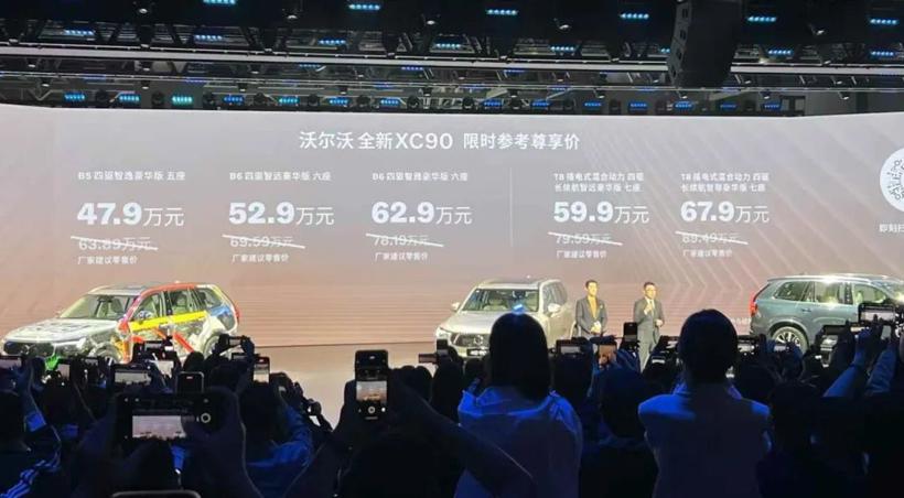 好在价格层面,XC90的确也比之前更务实了,指导价63.89万元-89.49万元,最高降幅超过20万元,来到了47.9万元-67.9万元,也推出了PHEV的版本,这基本上也切中了问界M9和理想L9的价格带,让消费者在科技和安全的对比中去思考和抉择。