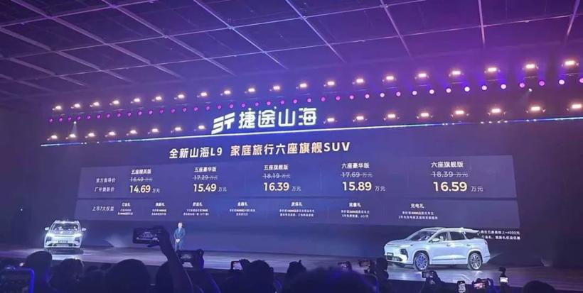 首先从名字来看,全新山海L9听起来跟理想L9同级,在前脸设计和6座布局、零重力座椅等方面,都向理想品牌靠拢,也是新能源产品,但实际上尺寸定位与理想L6接近,价格还要便宜好几万,把消费者的心理拿捏得准准的。而且14.69万元到16.59万元的价格,相较于指导价,差不多下探了接近2万元,性价比路线践行到位,再加上背靠奇瑞集团,和快速发展壮大的捷途汽车,看起来很有盼头。