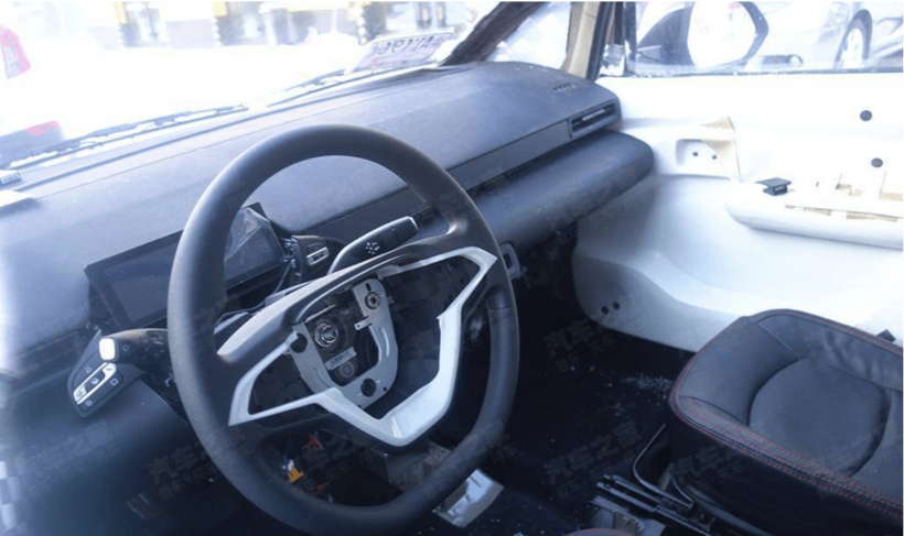 从此前曝光内饰谍照来看,新车配备双辐式方向盘,搭配狭长的仪表盘。内饰简洁风格,该测试车并没有安装中控屏,或为车型中的一款设定。