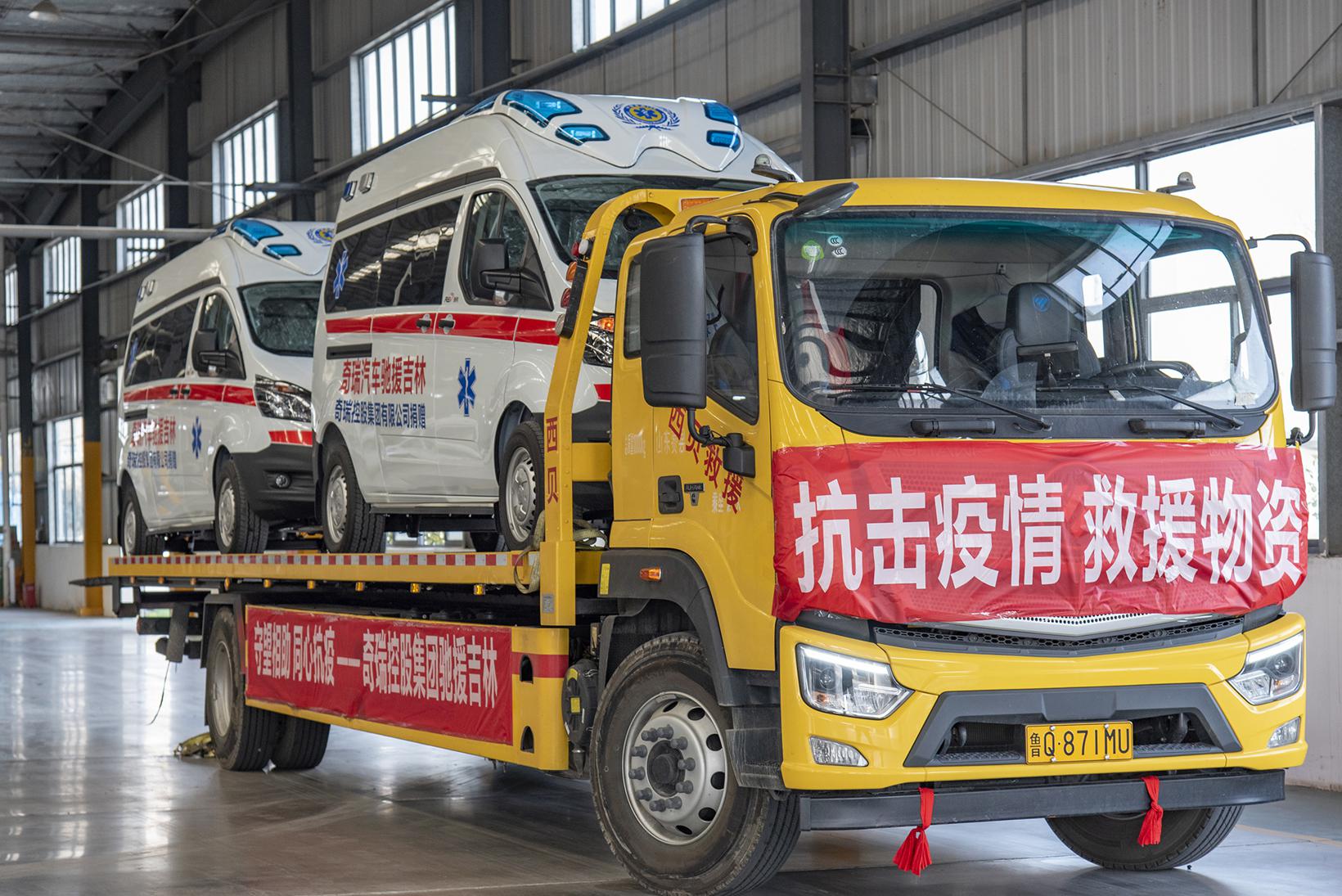 图为奇瑞捐赠负压救护车驰援抗疫一线